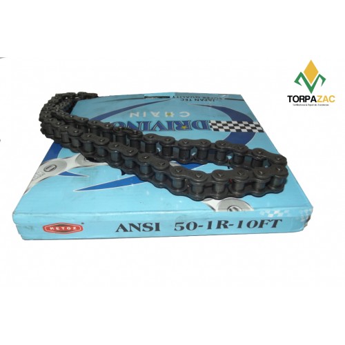 Cadena paso 50 - Cadena gruesa paso 50 que puede ir en el reductor superior normalmente dependiendo de las adaptaciones hechas a la máquina. Tiene un largo de 3.05 metros e incluye un candado.