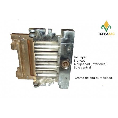 Base con bronces.- Base con cromo de alta durabilidad con juego de bronces, juego de bujes de 5/8 (interiores) y buje central.