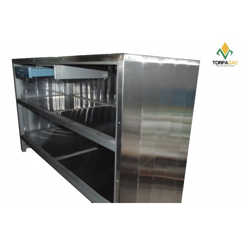 Mostrador acero Inoxidable.- Mostrador de 1.50 metros de largo por 60 cm de ancho y altura de 1 metro. Fabricado a base de lámina de acero inoxidable y estructura de PTR. Cuenta con dos repisas para dar un mayor aprovechamiento del espacio y cajón con cerradura. Servicio de Envío Gratis a sucursal de paquetería en modalidad ocurre (el comprador va a la sucursal más cercana de su domicilio a recoger su producto)