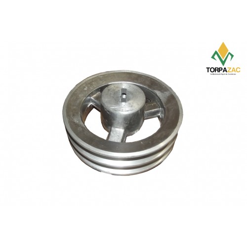 Polea doble.- Polea para 2 bandas (Dos tipo B) de 5 pulgadas, con diametro interior de 15/16 de pulgada. Esta polea va en el reductor de velocidad (transmisión).
